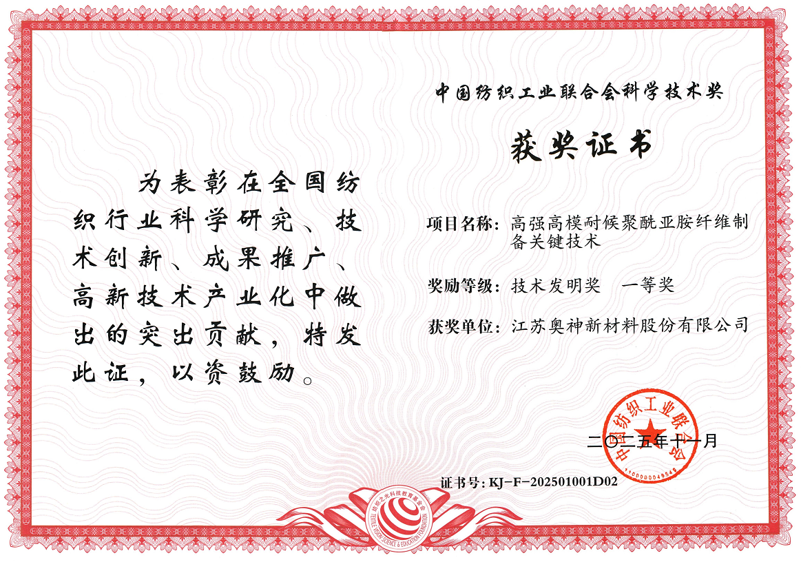 江蘇奧神新材料股份有限公司是一家專業從事聚酰亞胺高性能纖維及其后道制品的研發、生產、銷售為一體的國家高新技術企業,公司擁有全球首條千噸級干法紡聚酰亞胺纖維生產線,項目及產品2014年通過國家級鑒定,“反應紡絲”技術國際領先。